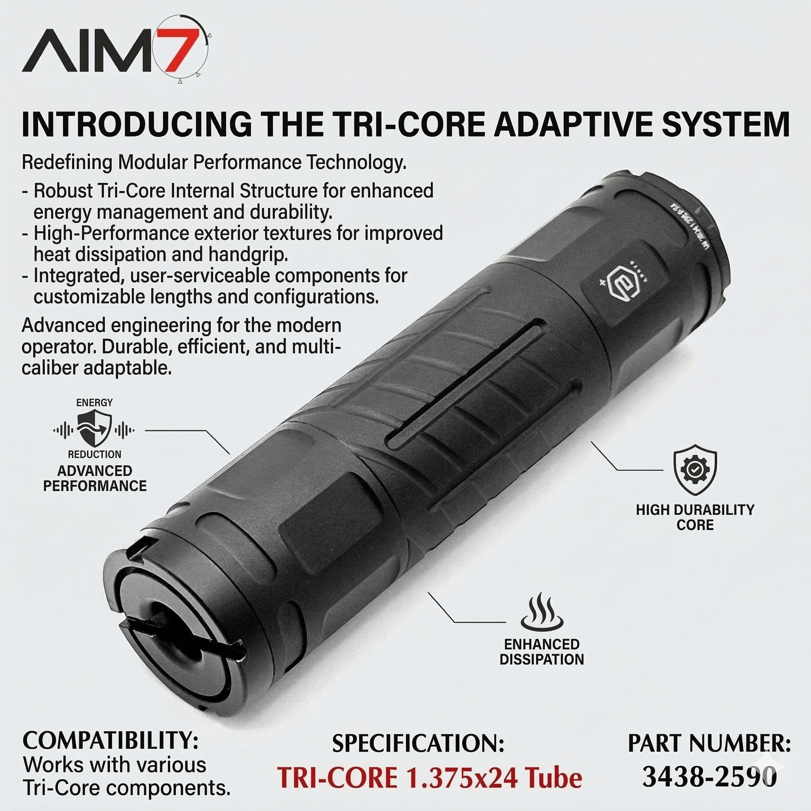 The AIM7 MATRA Bravo Modular Assembly OC is a modular Bravo-pattern tube system constructed from strong, lightweight aluminum components. Designed for precision alignment and compatibility, each section uses the industry-standard 1.375×24 HUB / Bravo thread interface.