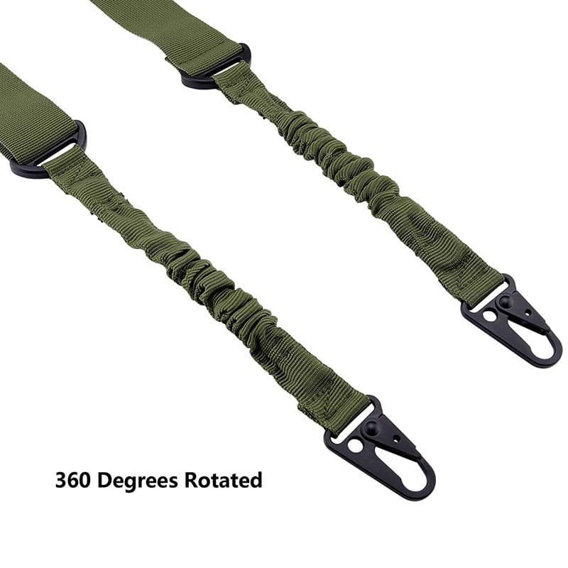 Tactical Two Point Quick Detach Sling Rifle Gun Sling Dual Bungee Strap Snap Hook Adjustable OD